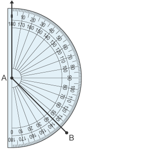 From B, draw a north line. Since A is to the east, the angle clockwise from north to east is 90°.