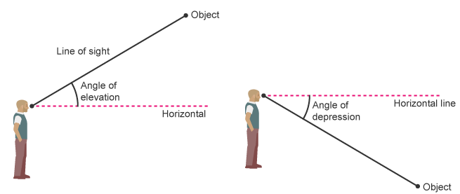 - Angle of Depression: The angle between the horizontal and the line of sight looking down.