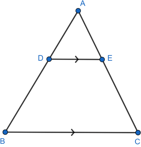 - \( DE \parallel BC \Rightarrow \angle ADE = \angle ABC \) (corresponding angles)