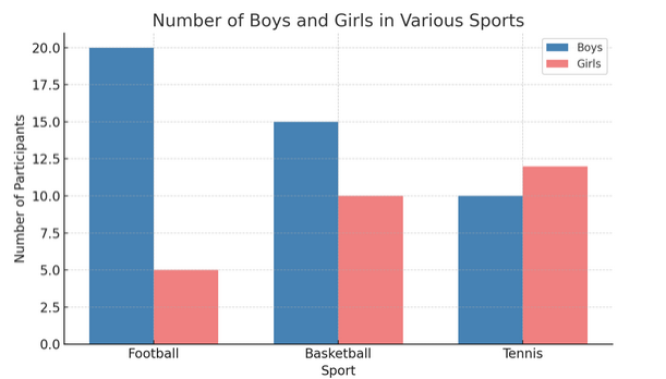 For each sport, draw two bars side by side: one for boys, one for girls.