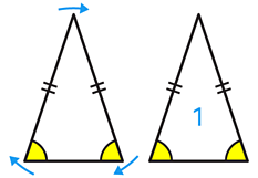 - Two equal sides and two equal angles.