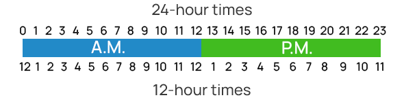 - Use either 12-hour (with AM/PM) or 24-hour format.