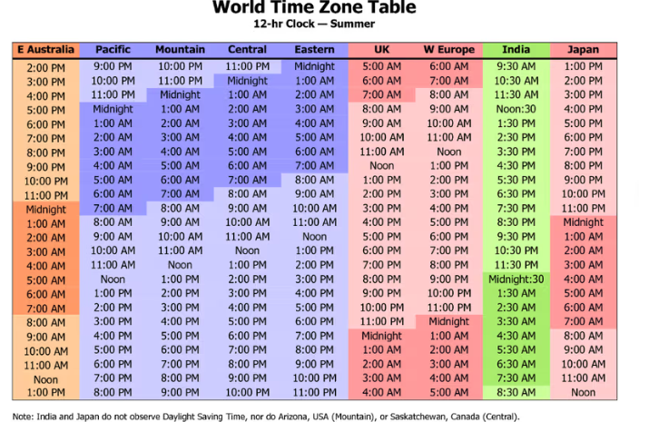 The Earth is divided into different time zones. The standard reference is GMT (Greenwich Mean Time), and all other zones are written as an offset, e.g. GMT+5:30 (India), GMT-4 (New York).