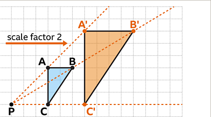 - Centre of enlargement: the fixed point from which distances are measured.