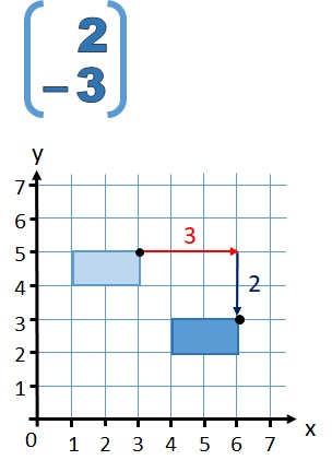 A point moves by the vector \( \begin{pmatrix} 4 \\ -2 \end{pmatrix} \). Describe the movement.