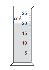The diagram shows some liquid in a measuring cylinder. The mass of the liquid is 16 g.