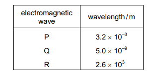 The table gives the wavelengths of three electromagnetic waves.