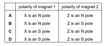 Diagrams 1, 2 and 3 show an experiment to compare two magnets 1 and 2.