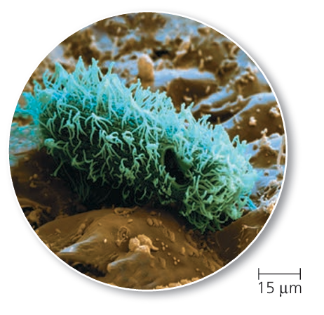 | Ciliated cells | Move mucus in airways | Hair-like cilia |