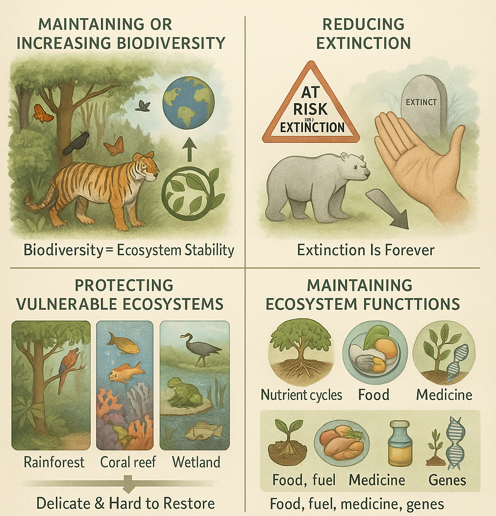 | Reduce extinction | Protects species from disappearing forever |