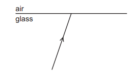 The diagram shows a ray of light in glass incident on the surface between the glass and air.