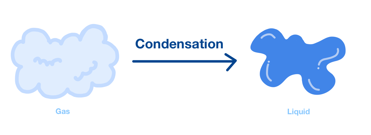 | Condensation | Gas | Liquid | Lose heat | Exothermic |