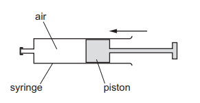 Air in a sealed syringe is slowly compressed by moving the piston. The temperature of the air stays the same.