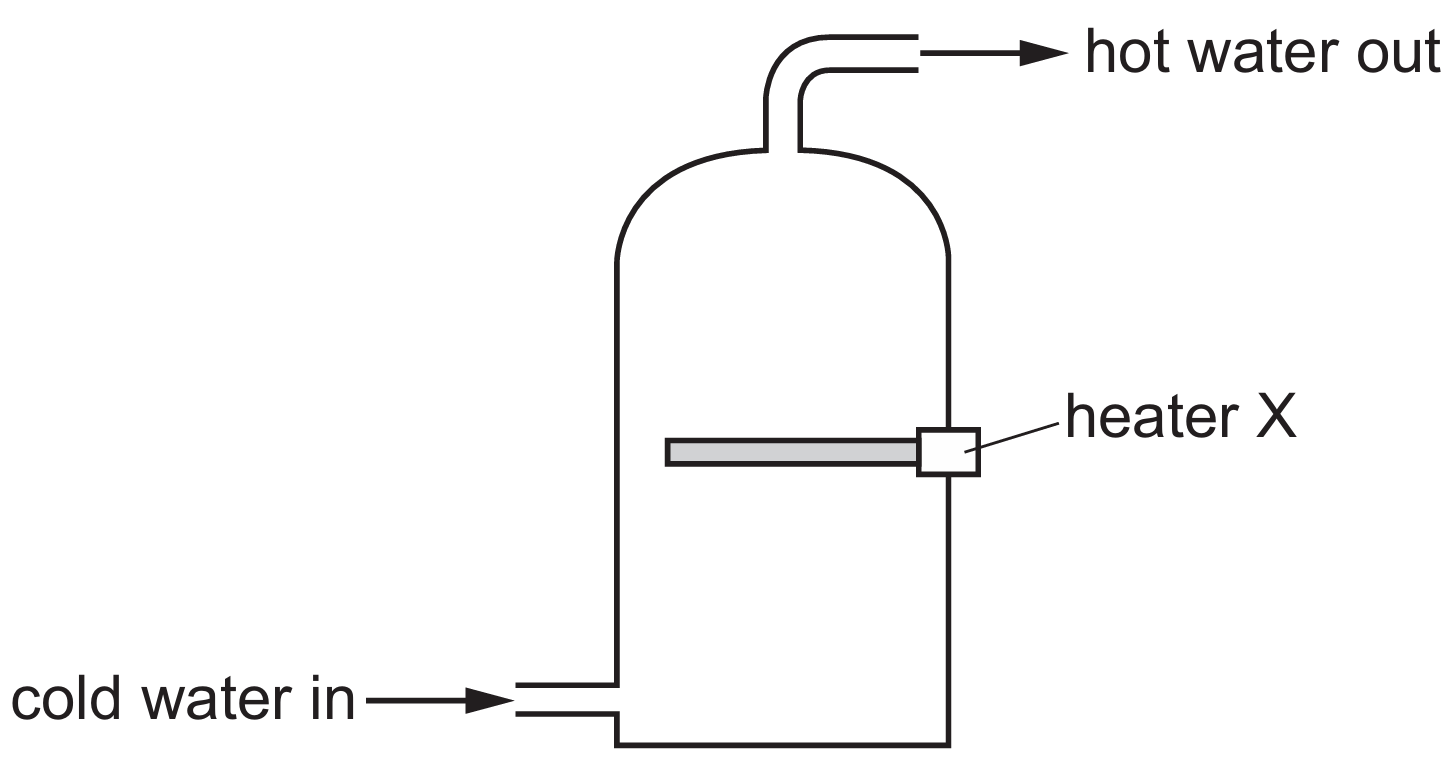 When heater $X$ is on, the water above it is heated, becomes less dense, and rises, creating a convection current that efficiently transfers thermal energy upwards.