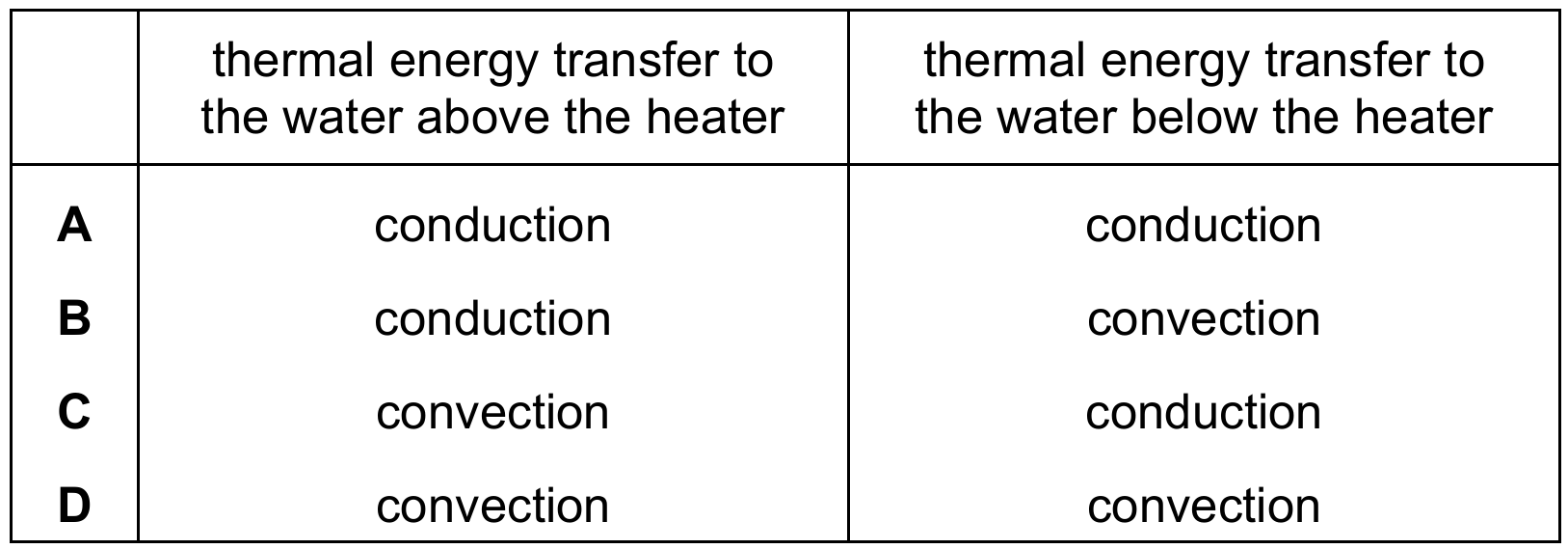 However, since hot water rises, convection cannot transfer heat downwards to the water below the heater.