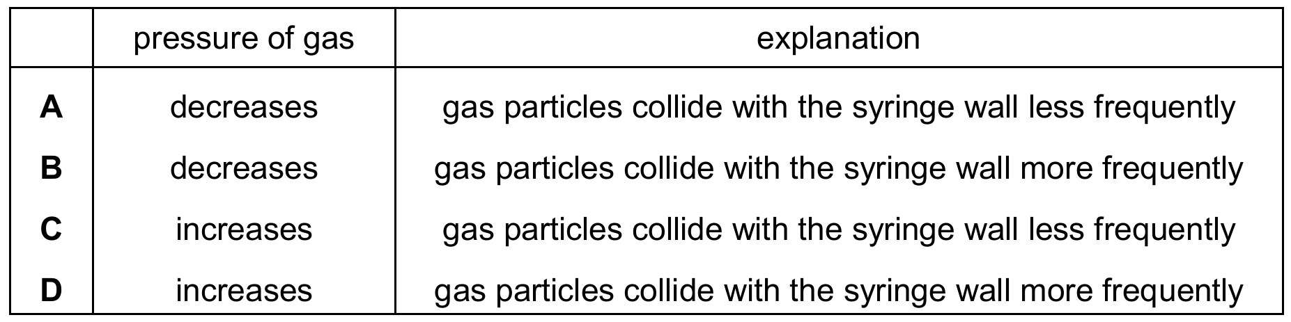 Therefore, Row A correctly identifies that the pressure decreases because particles collide with the walls less frequently.