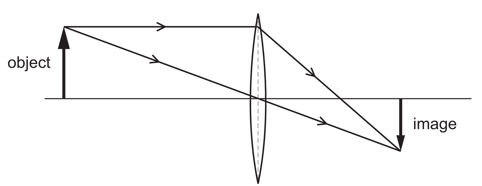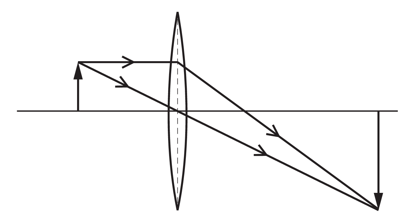 The arrow representing the image points downwards while the object points upwards, confirming the image is inverted.