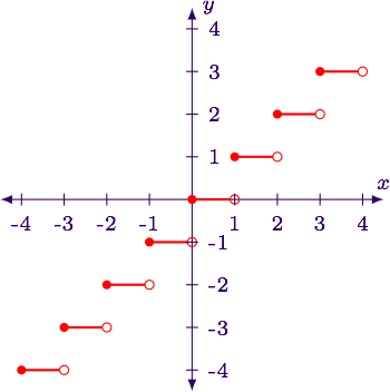 Examples: \( \lfloor 4.7 \rfloor = 4 \), \( \lfloor -1.3 \rfloor = -2 \).