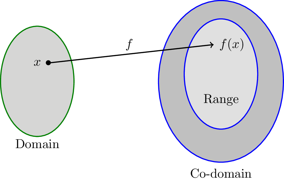 (b) Onto Function (Surjective): If every element of the co-domain is mapped by at least one element of the domain, it is onto.