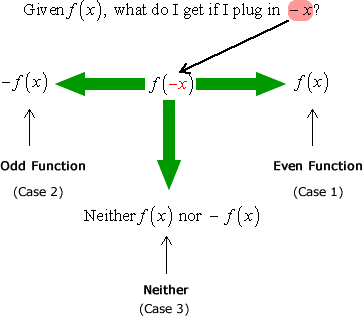 - \( f(x) = \sin x \) → odd, \( f(x) = \cos x \) → even