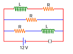 Long after the switch is closed, the inductors behave like short circuits (zero resistance). The circuit reduces to three resistors in parallel.