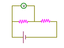 A cell of emf 90V is connected across series combination of two resistors each of 100\(\Omega\) resistance. A voltmeter of resistance 400\(\Omega\) is used to measure the potential difference across each resistor. The reading of the voltmeter will be :