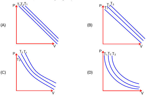 For isothermal process: P₃ > P₂ > P₁ at constant volume and graph will be hyperbolic in nature.