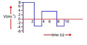 Displacement = \(8\times2-2\times4+4\times4-2\times4 = 32-16 =16\) m,