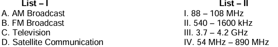 Correct matching: A-II, B-I, C-IV, D-III