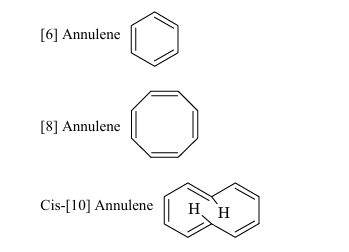 Assertion A : [6] Annulene, [8] Annulene and cis–[10] Annulene, are respectively aromatic, not-aromatic and aromatic.