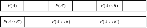 8. The diagram below shows the probabilities for events \(A\) and \(B\), with \(P(A′)\) = \(p\).