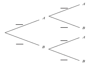 (a) Complete the tree diagram below by writing probabilities in the spaces provided.