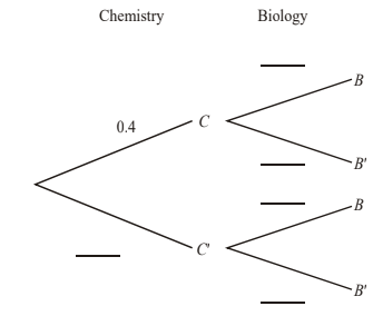 5. The events \(B\) and \(C\) are dependent, where \(C\) is the event “a student takes Chemistry”, and \(B\) is the event “a student takes Biology”. It is known that