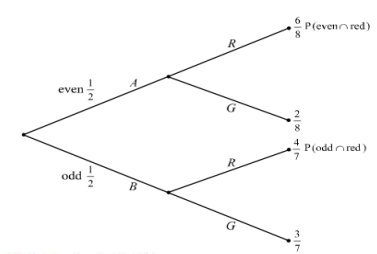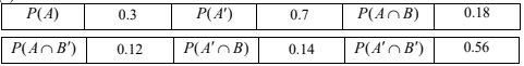 (c) \(P(A’|B) = \frac{\frac{4}{5}\times \frac{3}{8}}{\frac{7}{20}}=\frac{12}{14}\left ( =\frac{6}{7} \right )\)
