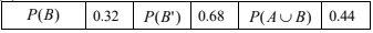 (c) \(P(C | B)=\frac{P(B \cap C)}{P(B)}=\frac{0.24}{0.54}=\frac{4}{9}\) (\(= 0.444, 3\) sf)