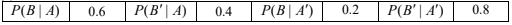 \(P(C ) = 0.4, P(B | C) = 0.6, P(B | C ‘ ) = 0.5\).