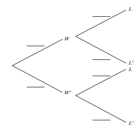 (a) Complete the tree diagram by entering probabilities and listing outcomes.