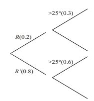 P (> 25°) = \(0.2 \times 0.3 + 0.8 \times 0.6 = 0.54\)