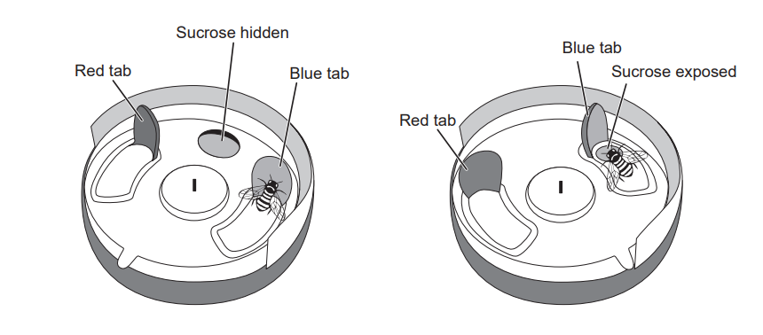 • However, bees in the trained groups (B and R) were far more proficient. Their median LPI (~28) was dramatically higher than that of the control (~2).
