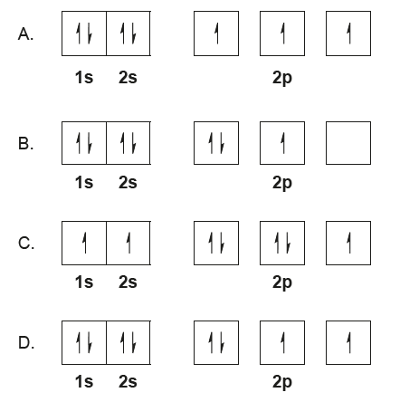 - This matches option (A): 1s: ↑↓, 2s: ↑↓, 2p: ↑, ↑, ↑