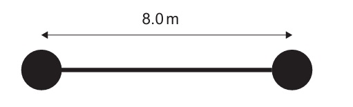 Each sphere is 4.0 m from the axis of rotation (half of 8.0 m).