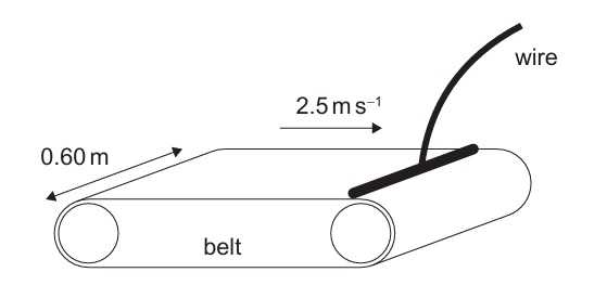In one second, a length of belt \(L = v \times 1 \text{ s} = 2.5\) m passes the point.