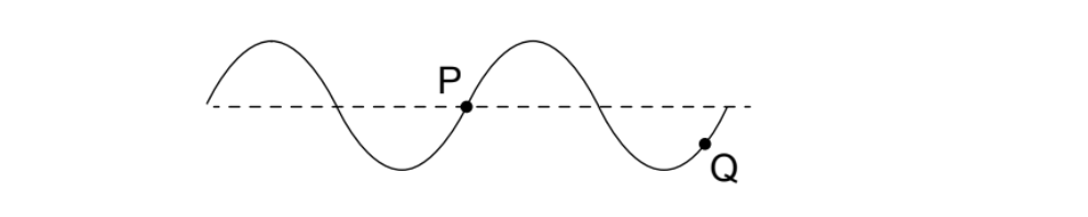 Point \(Q\) is also on a rising part of the wave (positive slope). With the wave travelling right to left, \(Q\) will therefore move upwards.