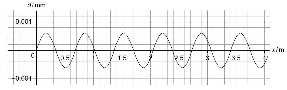 (i) State the wavelength and the period of the sound wave. [2]