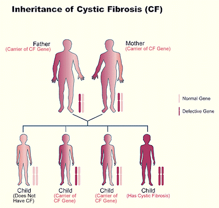 Fig: Above diagram illustrates how the genes of cystic fibrosis are inherited from parents to offsprings
