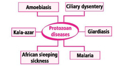 Fig: The above diagram lists the various protozoan diseases with their causative agents