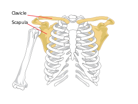 Pectoral Girdle consists of two bones clavicle and scapula. Scapula contains the cavity known as Glenoid Cavity which forms ball and socket joint with the humerus. It articulates with the forelimb bones.