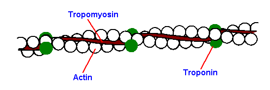 The monomeric unit of actin is known as G actin or globular actin. Polymers of G actin form F actin or F filaments. Two F filaments wound around each other to form actin. Another protein tropomyosin, run around the F actin. Another protein, troponin is distributed at regular intervals on tropomyosin.