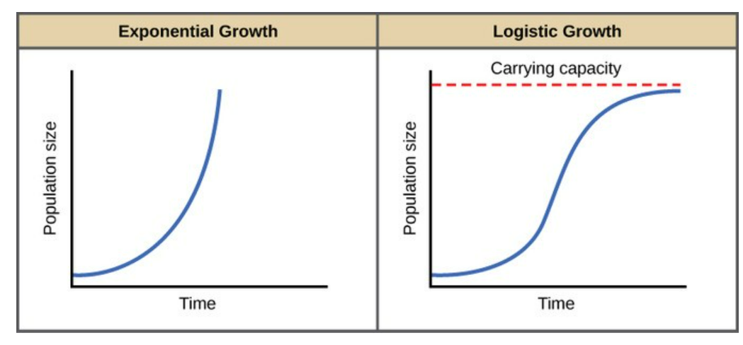 Logistic (S-shaped): Limited resources, realistic.