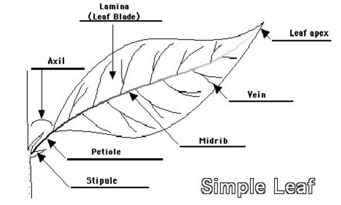 - Petiole → stalk connecting leaf to stem